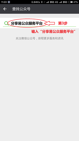 2、查找内容输入”分享易公众服务平台“,或者输入 ”EShare_Weixin” ;